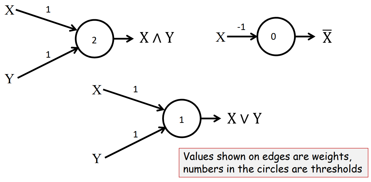 - $\sum_ix_iw_i>T$神经元被激活(这边的输出也是布尔的)