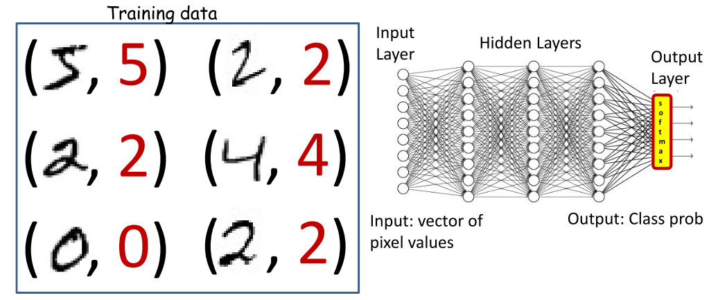 下面通过一个例子来解释清楚神经网络的输入和输出。对于下面的手写数字的数据集,分两个任务